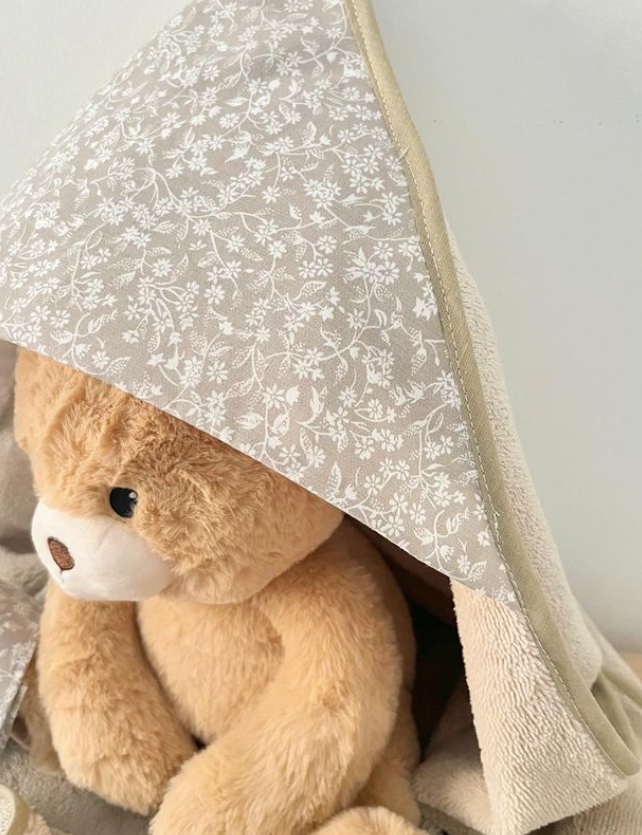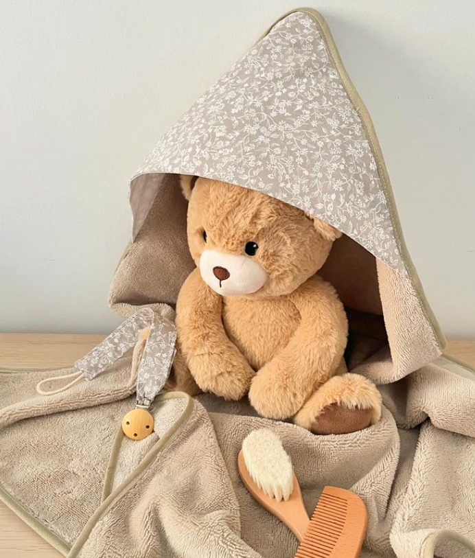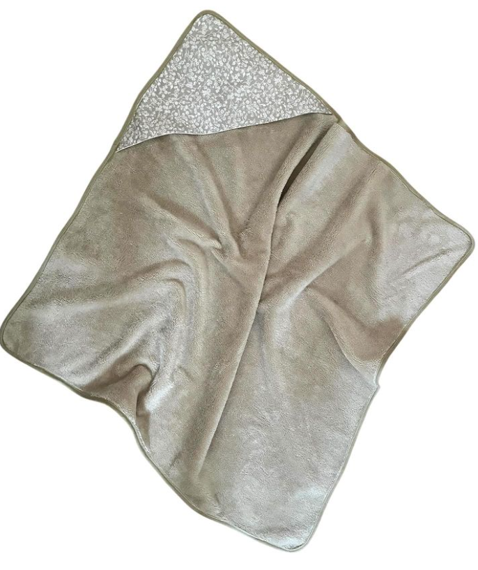La caratteristica forma a triangolo rende questo accappatoio facilmente maneggevole, permettendo di avvolgere e asciugare il neonato con estrema facilità.
