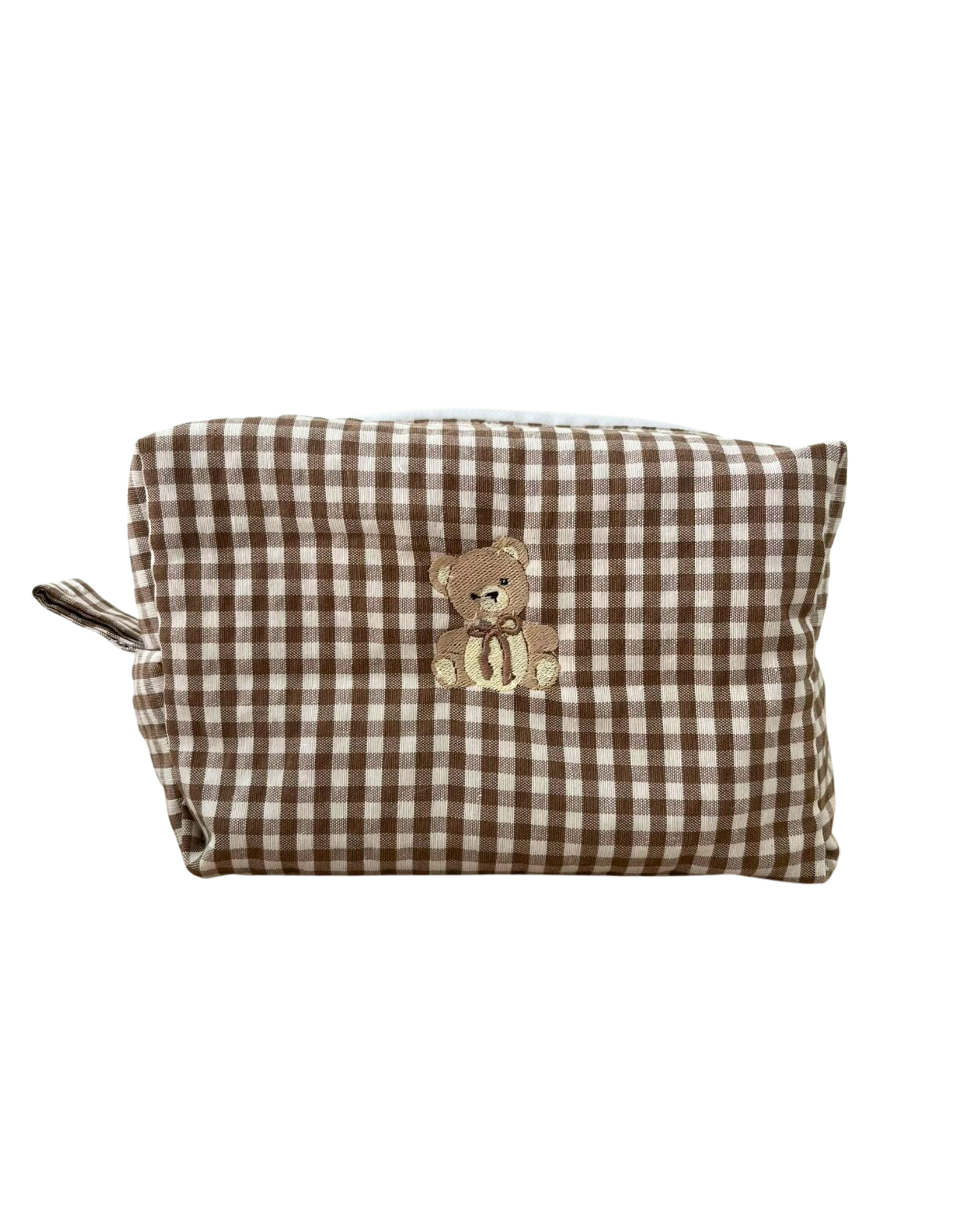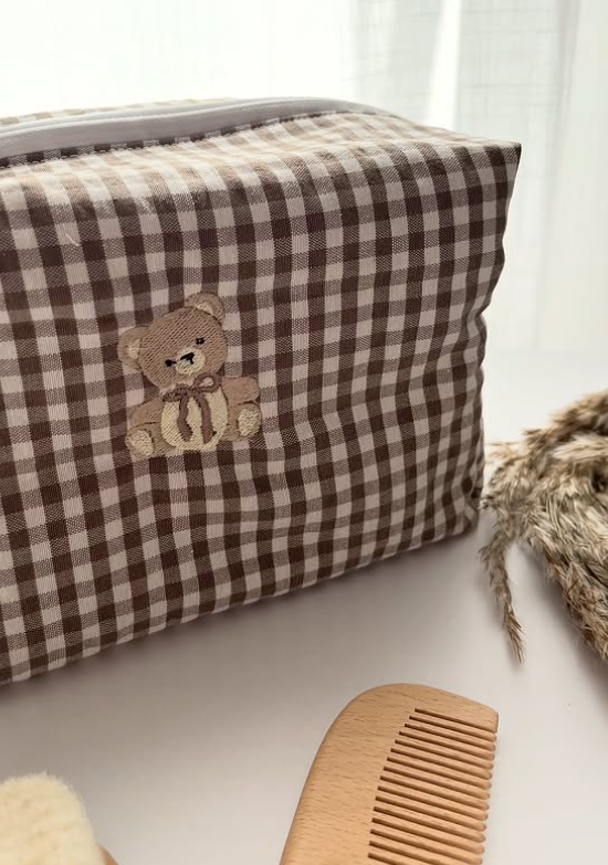 Il Beauty teddy è un borsello capiente e delicato in tessuto trapuntato, pensato appositamente per le esigenze della mamma in ospedale e fuori.