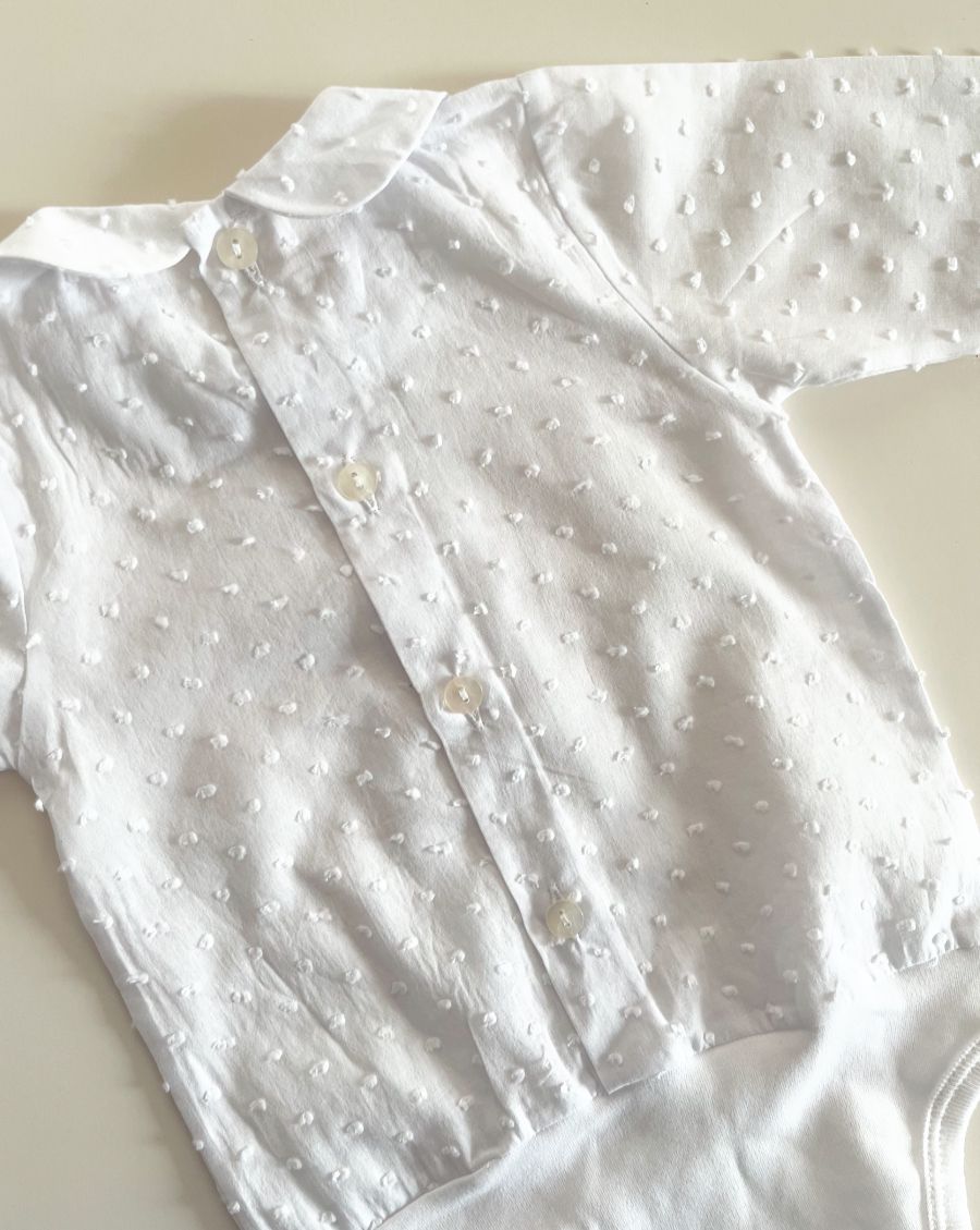 Realizzato in morbido cotone plumetis, questo body per bambini unisce eleganza e comodità. Il suo aspetto delicato lo rende perfetto per qualsiasi evento speciale, mentre la sua morbidezza e comfort lo rendono adatto per l'uso quotidiano. Un must-have per i piccoli.
