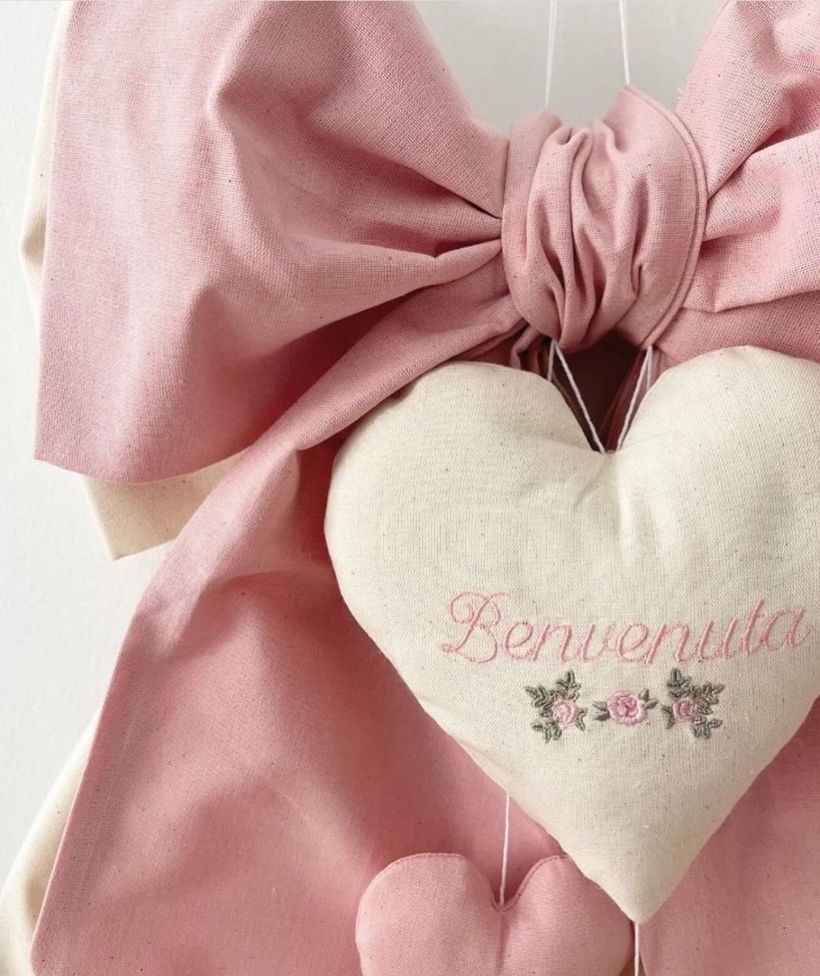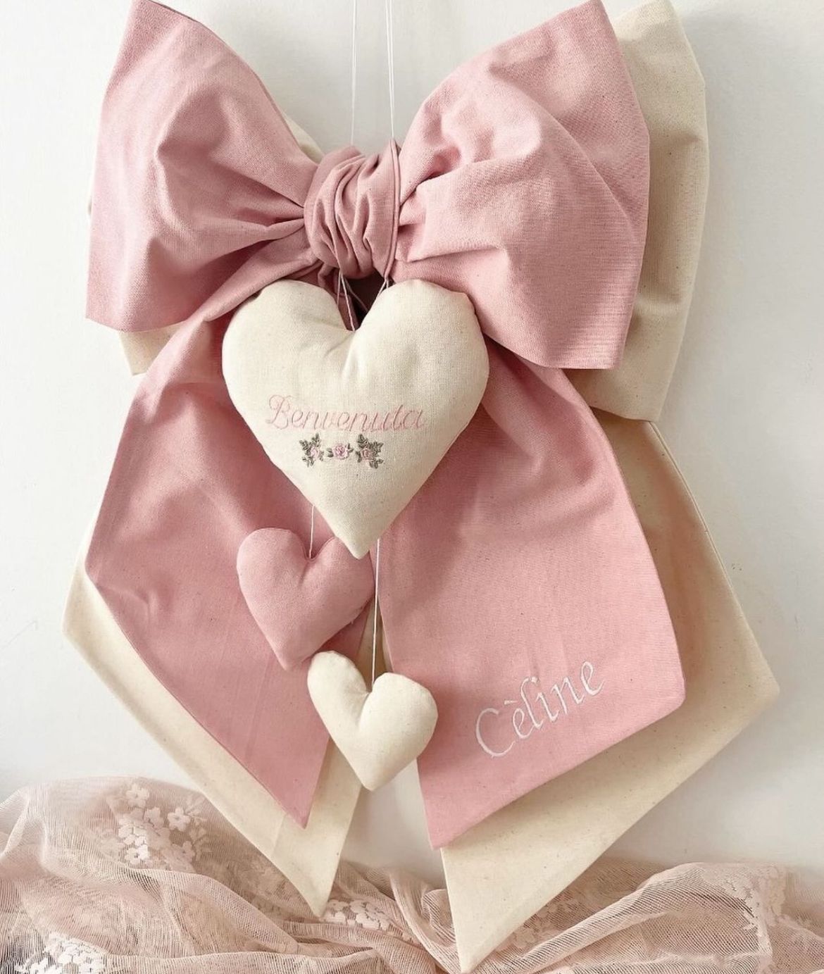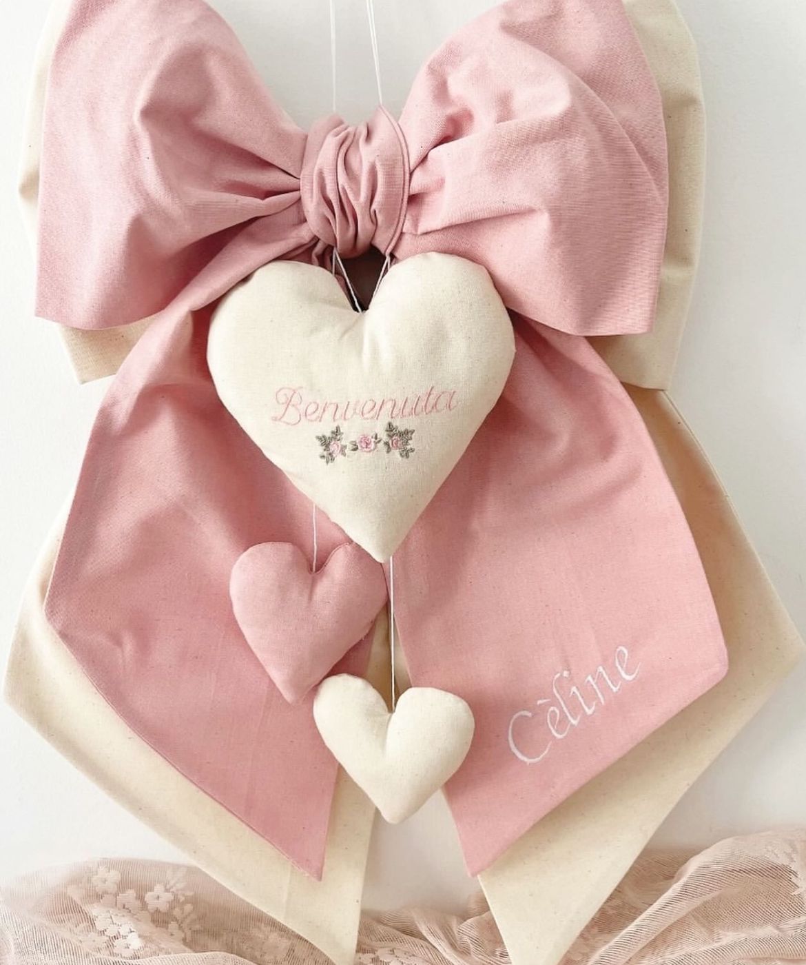 Questo fiocco nascita rosa con fiorellini è il regalo perfetto per celebrare la nascita di una bimba. Con il suo design delicato e raffinato, è l'accessorio ideale per accogliere una nuova vita nella famiglia. Un segno di benvenuto dolce e speciale per la nuova arrivata.