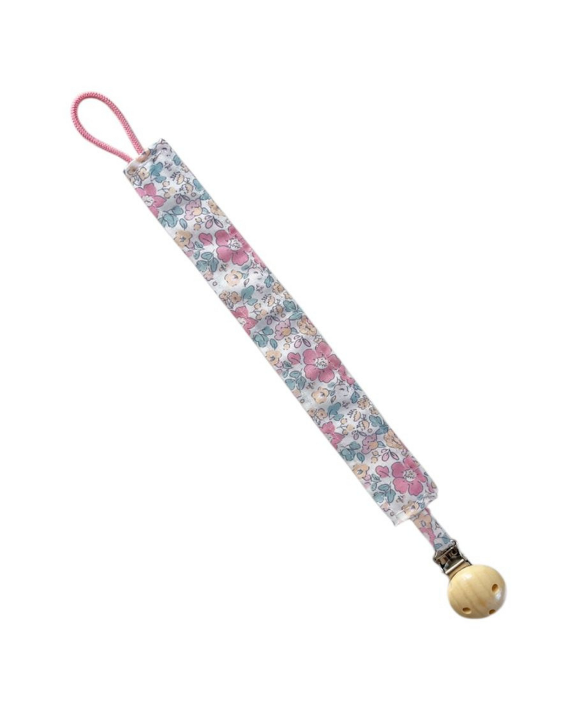 Portaciuccio in cotone fiorellini Priscilla con clip in accaio e adattatore in legno per ogni tipologia di ciuccio!